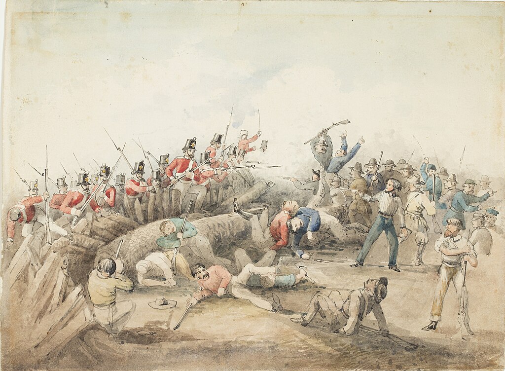 Die Diggers begannen, sich militärisch zu organisieren. Mitte November errichteten sie eine einfache Palisade aus Holz. Diese Stellung wurde unter dem Namen Eureka Stockade bekannt. Peter Lalor übernahm die Leitung. Die Gruppe verfügte über wenige Gewehre. Viele Männer waren mit Werkzeugen oder improvisierten Waffen ausgestattet. Die Verteidigungsstellung war schlecht gewählt, offen und kaum gesichert. Dennoch hielten die Männer an ihr fest. Die Fahne, die sie hissten – weißes Kreuz auf blauem Grund, fünf Sterne – wurde zum sichtbaren Ausdruck ihres Anspruchs auf Würde und Mitbestimmung.