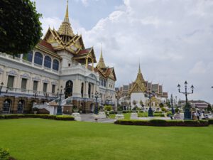 Während der folgenden Jahrhunderte entwickelte sich Thai vor allem im Umfeld des Hofes weiter. Das Königreich Ayutthaya, das von 1351 bis 1767 bestand, war ein mehrsprachiger Raum. Thai wurde parallel zu Khmer genutzt, insbesondere in Verwaltung und Diplomatie. Diese lange Phase des Nebeneinanders hinterließ deutliche Spuren im Wortschatz. Viele Begriffe aus Politik, Hofzeremoniell und Architektur stammen aus dem Khmer. Hinzu kamen Lehnwörter aus Pali und Sanskrit, vermittelt durch den buddhistischen Theravada, der im Reich von Ayutthaya fest verankert war.