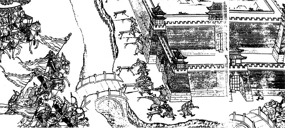 Titel: Schlacht bei Liaoyang, 1621, Darstellung von 1635.