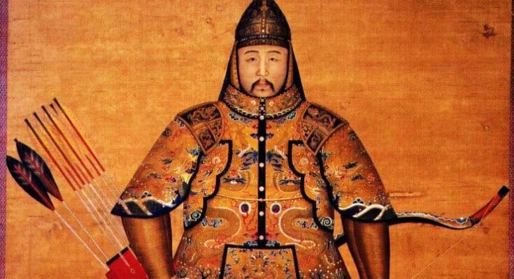 Titel: Yongzheng in Rüstung, Abbildung aus der Qing-Zeit.