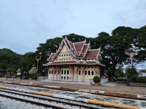 Nahe dem Bahnhof entstand das frühere Railway Hotel, das heutige Centara Grand. Es war eines der ersten großen Strandhotels Thailands. Die Kombination aus Eisenbahn, königlicher Präsenz und touristischer Infrastruktur machte Hua Hin zu einem Ort, der Reisen, Ruhe und Modernisierung miteinander verband.