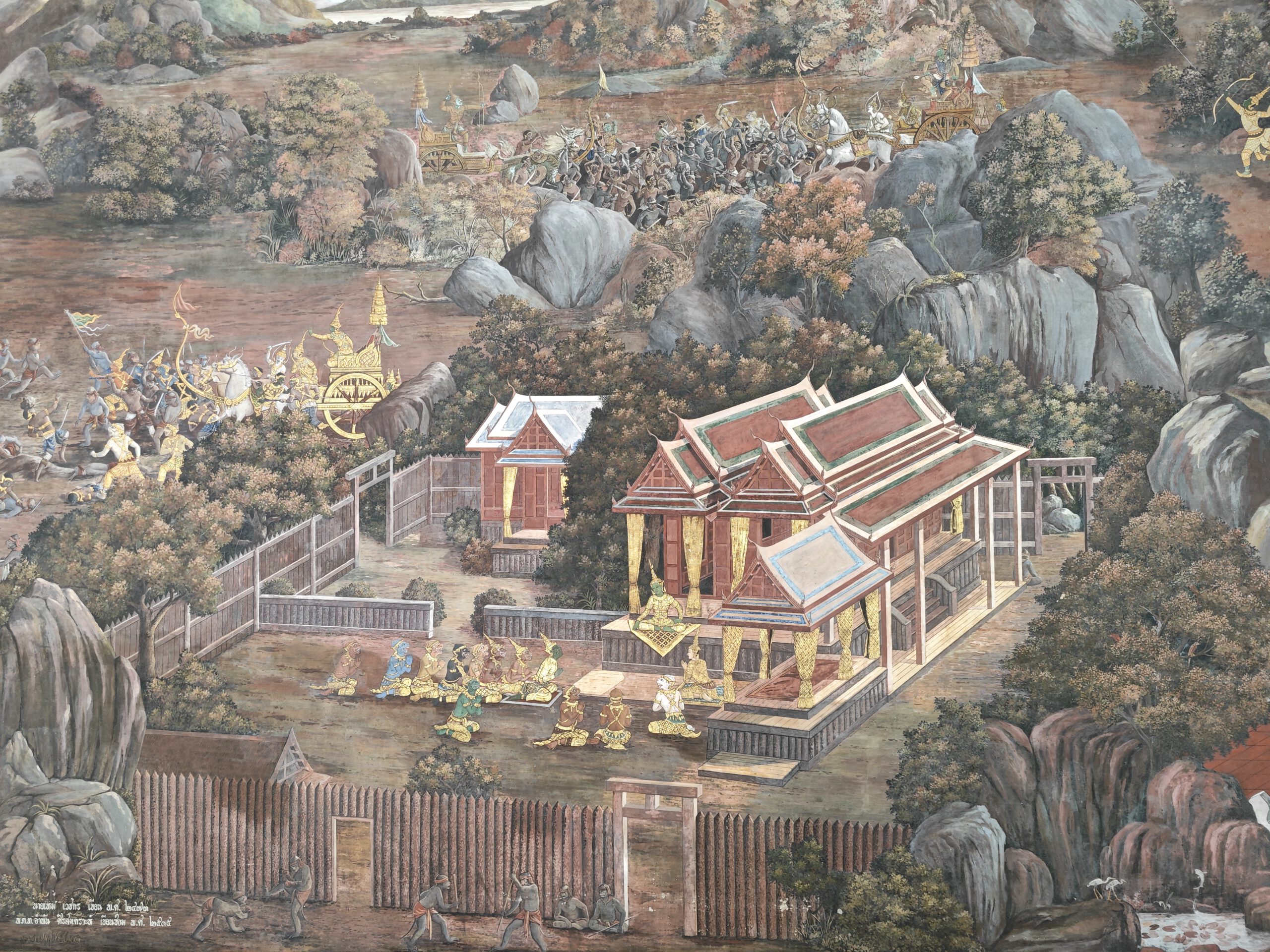Besonders eindrucksvolle Wandmalereien finden sich im Wat Phra Kaeo, dem Tempel des Smaragd-Buddhas in Bangkok. Dort wird die gesamte Geschichte in zahlreichen Szenen erzählt.